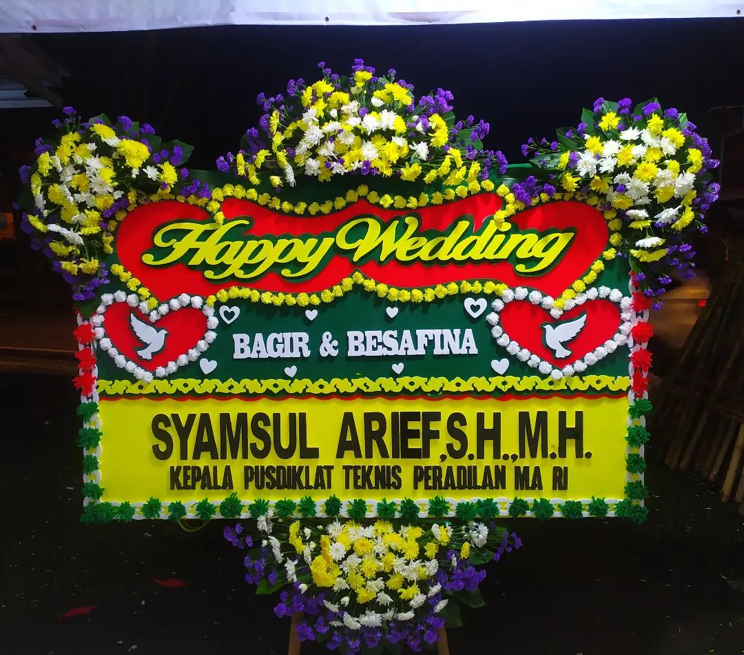 Rangkaian bunga papan khusus untuk acara pernikahan. Dengan rangkaian bunga papan pernikahan ini, Anda dapat ikut menunjukan rasa bahagia dan selamat atas hari bahagia keluarga, sahabat ataupun orang-orang terdekat Anda.
