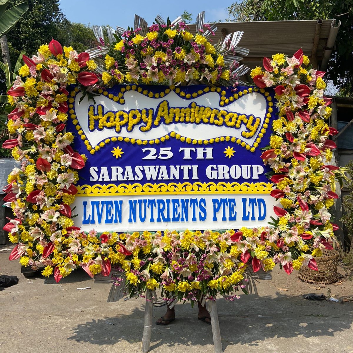 Rangkaian bunga papan yang dapat digunakan untuk memberikan ucapan selamat. Dengan rangkaian bunga papan ini, Anda dapat menunjukan rasa hormat dan bahagia terhadap orang-orang terdekat Anda di momen-momen spesialnya.