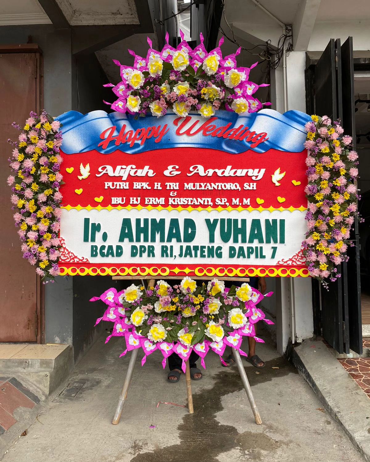 Rangkaian bunga segar penuh warna dan ucapan selamat, akan turut melengkapi bagian dari hari bahagia pernikahan.
