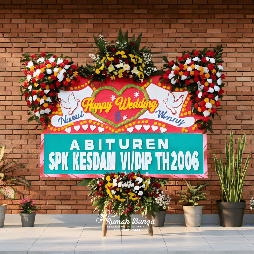 Rangkaian bunga papan khusus untuk acara pernikahan. Dengan rangkaian bunga papan pernikahan ini, Anda dapat ikut menunjukan rasa bahagia dan selamat atas hari bahagia keluarga, sahabat ataupun orang-orang terdekat Anda.
