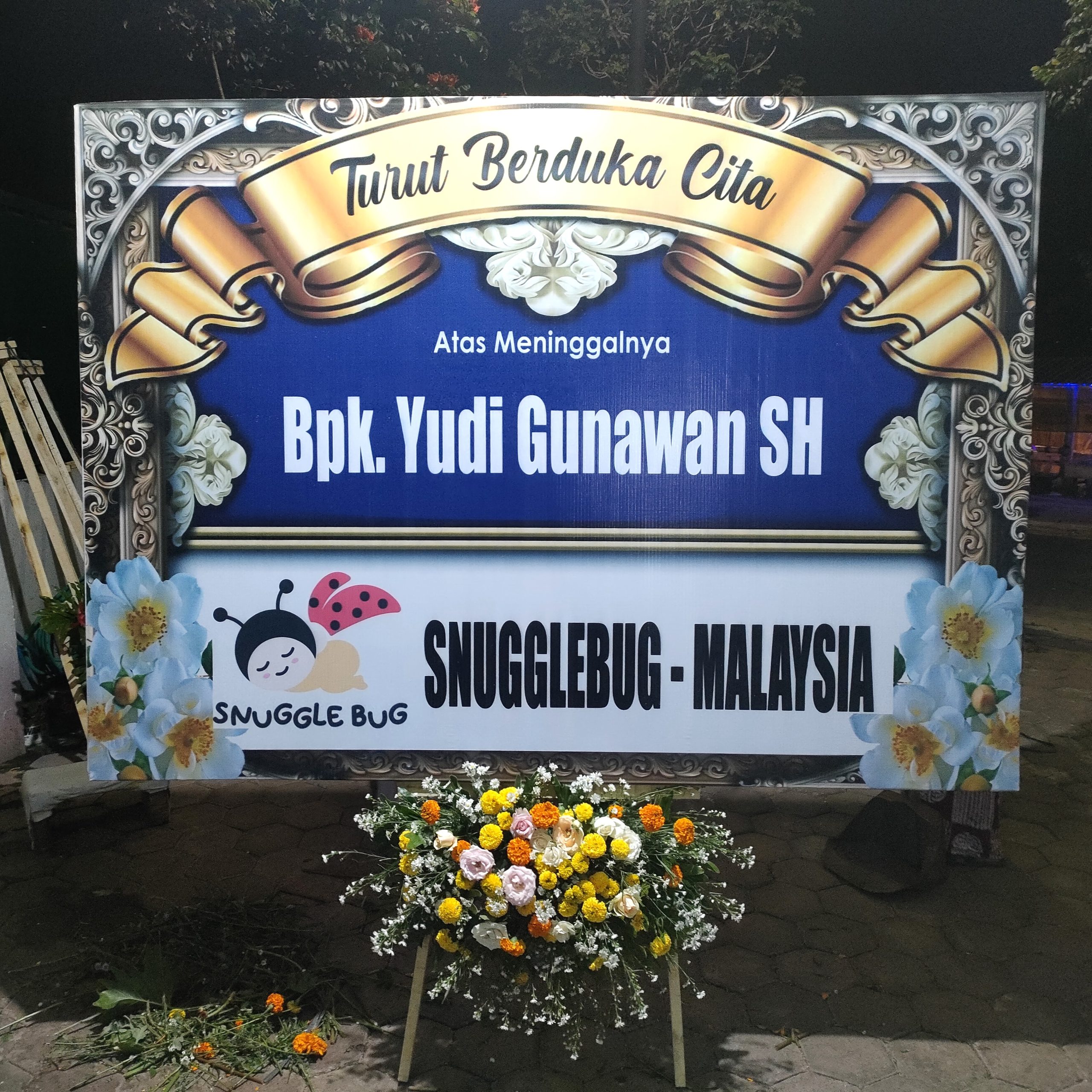 Produk ini terdiri dari beragam jenis bunga dengan warna yang beraneka macam, sesuai dengan model contoh karangan bunga duka cita. Komposisi tata letak tulisan yang rapi, dan bentuk tulisan yang jelas, serta warna background yang kontras membuat rangkaian bunga papan yang satu ini mudah terlihat oleh orang-orang yang ada.
