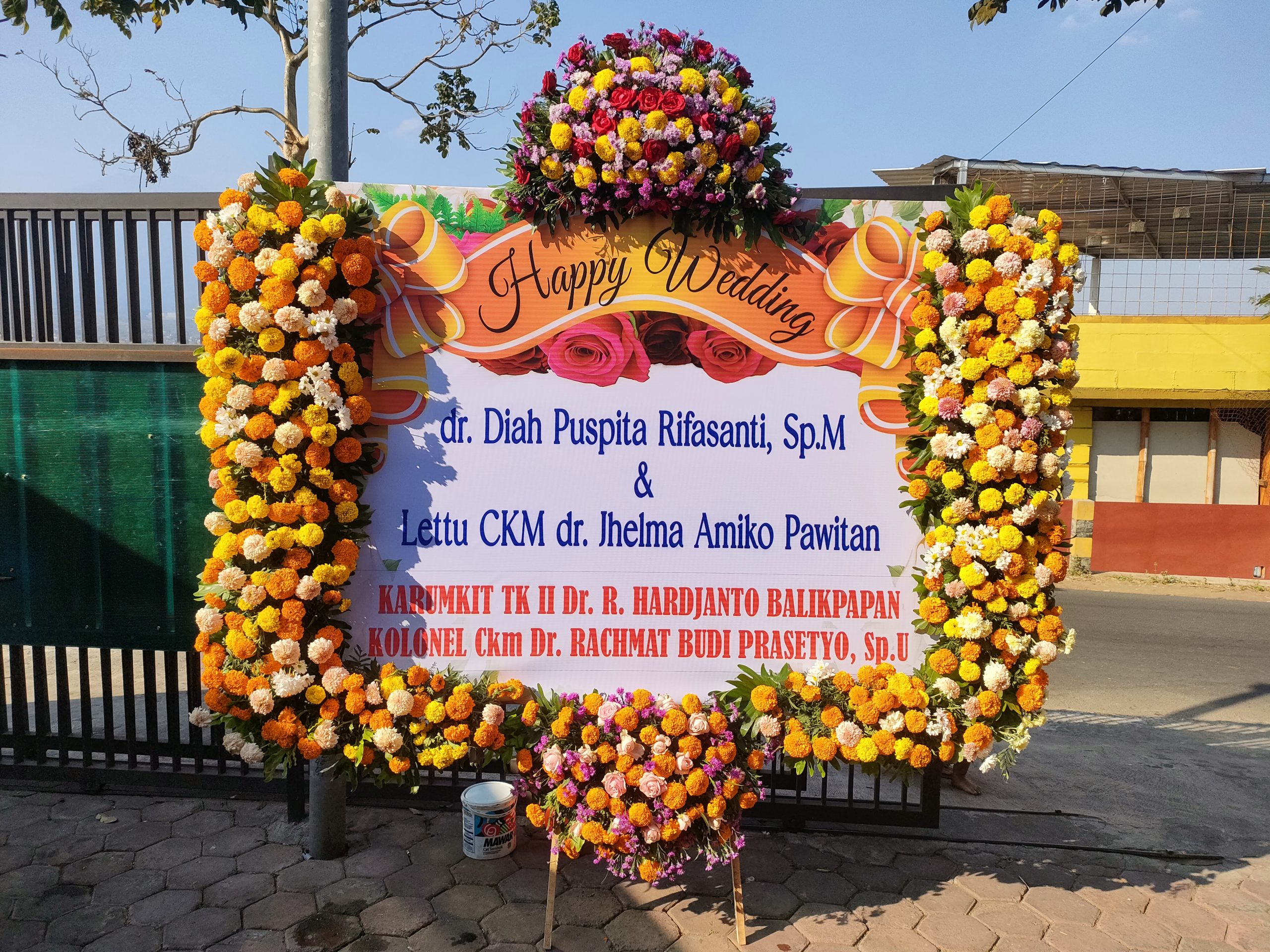Rangkaian bunga segar penuh warna dan ucapan selamat, akan turut melengkapi bagian dari hari bahagia pernikahan.