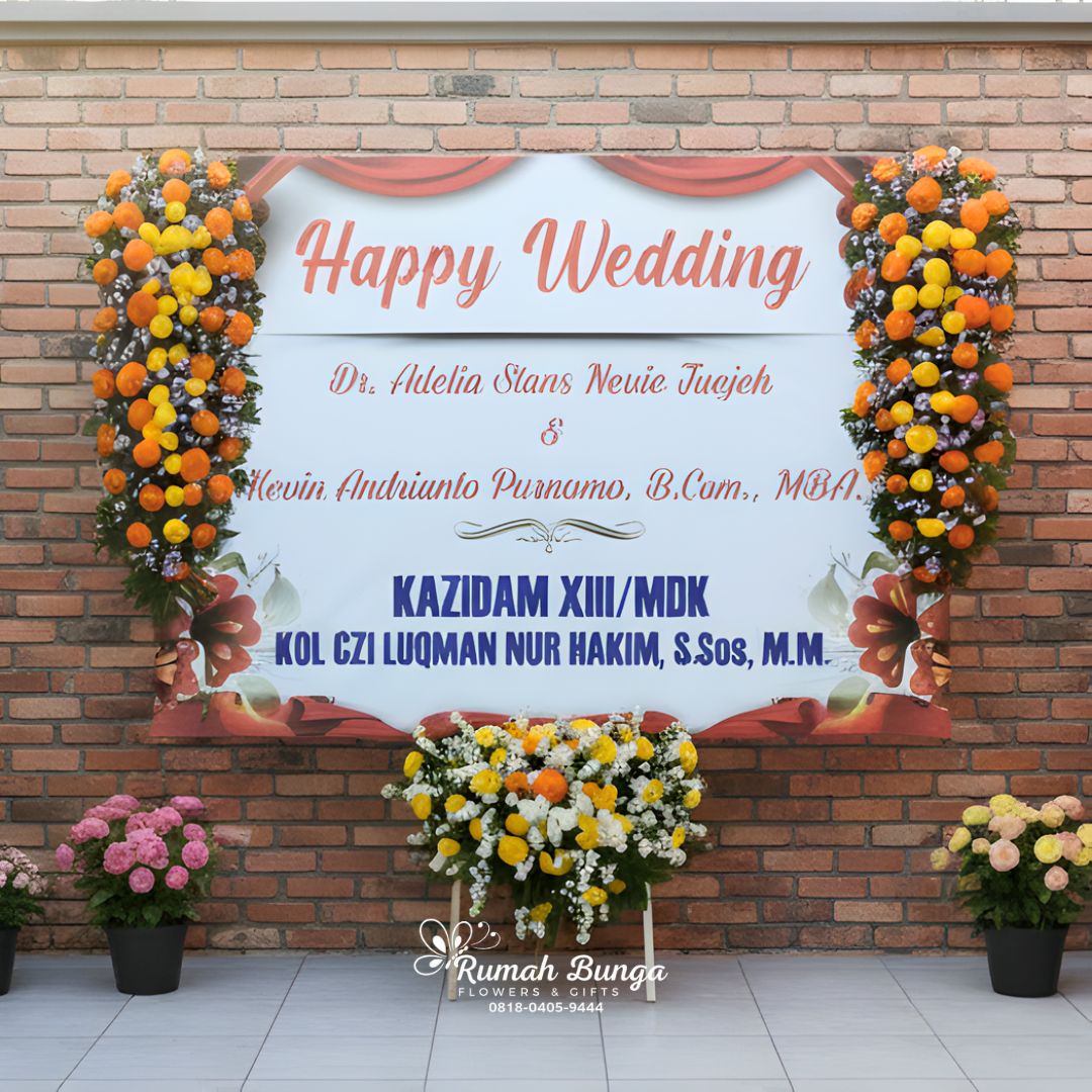 Rangkaian bunga papan yang dapat digunakan untuk memberikan ucapan selamat. Dengan rangkaian bunga papan ini, Anda dapat menunjukan rasa hormat dan bahagia terhadap orang-orang terdekat Anda di momen-momen spesialnya.