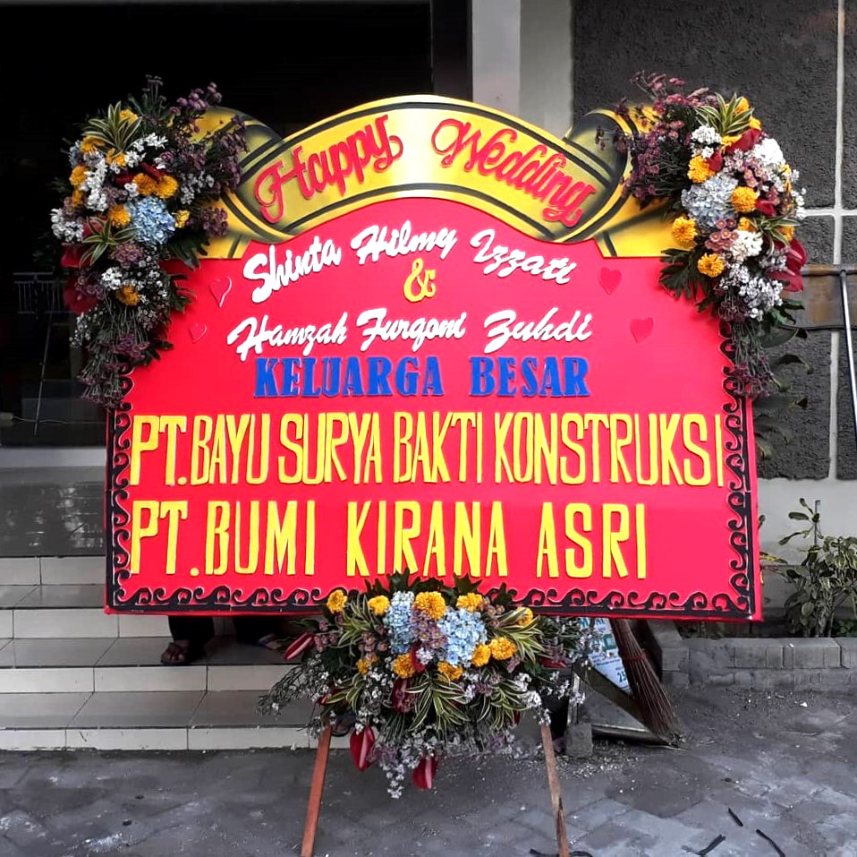 Rangkaian bunga papan khusus untuk acara pernikahan. Dengan rangkaian bunga papan pernikahan ini, Anda dapat ikut menunjukan rasa bahagia dan selamat atas hari bahagia keluarga, sahabat ataupun orang-orang terdekat Anda.