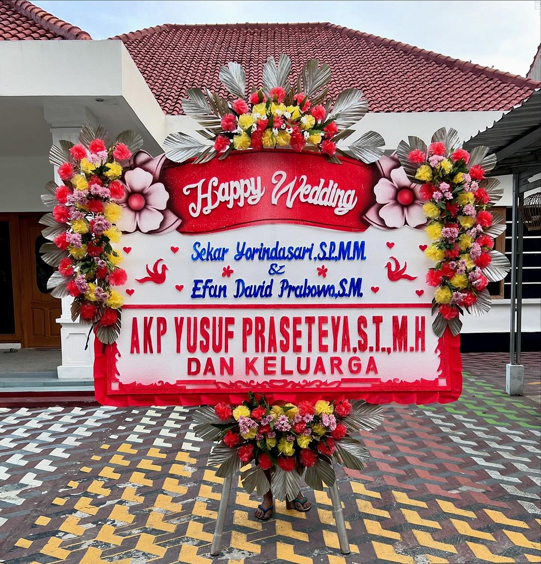 Rangkaian bunga papan khusus untuk acara pernikahan. Dengan rangkaian bunga papan pernikahan ini, Anda dapat ikut menunjukan rasa bahagia dan selamat atas hari bahagia keluarga, sahabat ataupun orang-orang terdekat Anda.