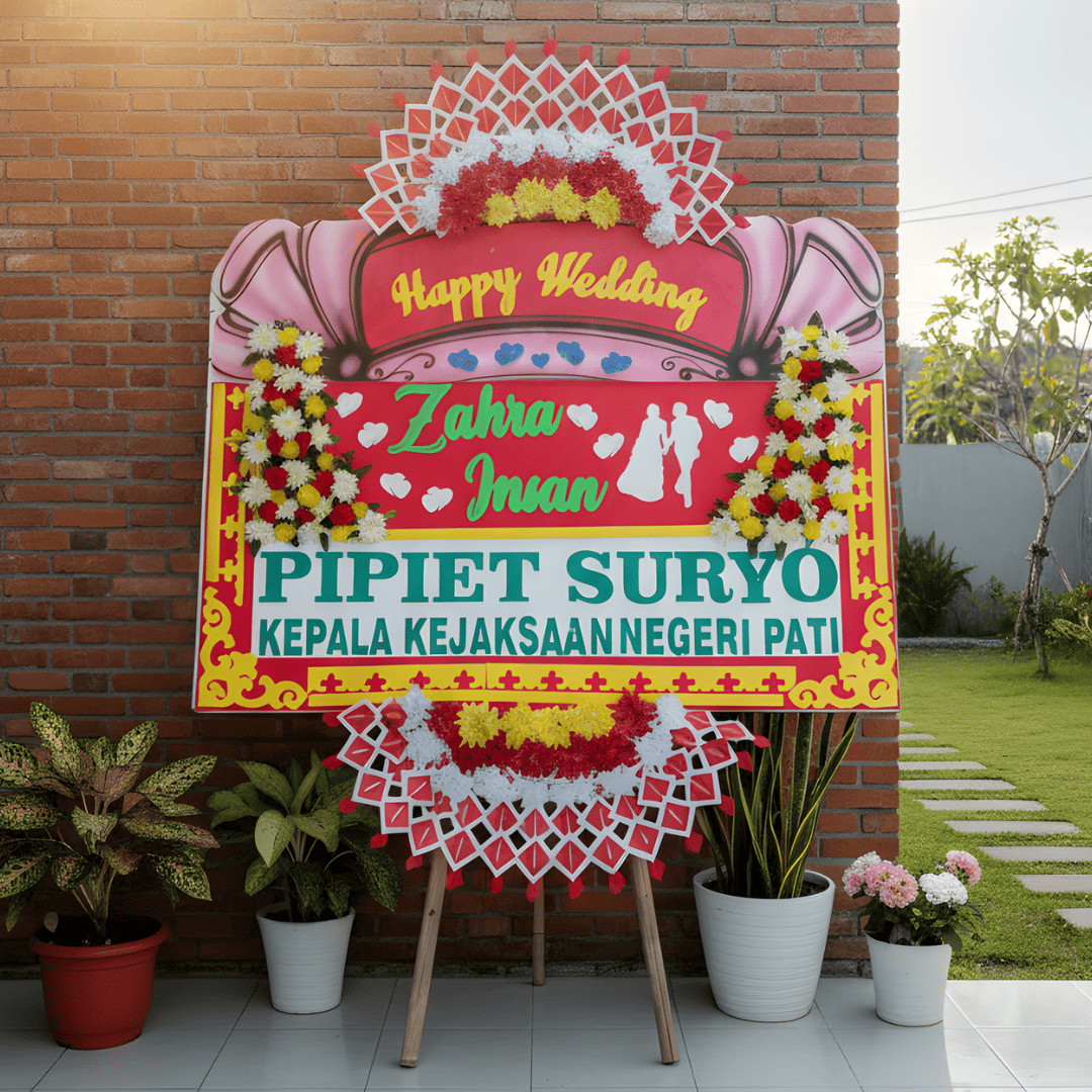 Rangkaian bunga papan khusus untuk acara pernikahan. Dengan rangkaian bunga papan pernikahan ini, Anda dapat ikut menunjukan rasa bahagia dan selamat atas hari bahagia keluarga, sahabat ataupun orang-orang terdekat Anda.