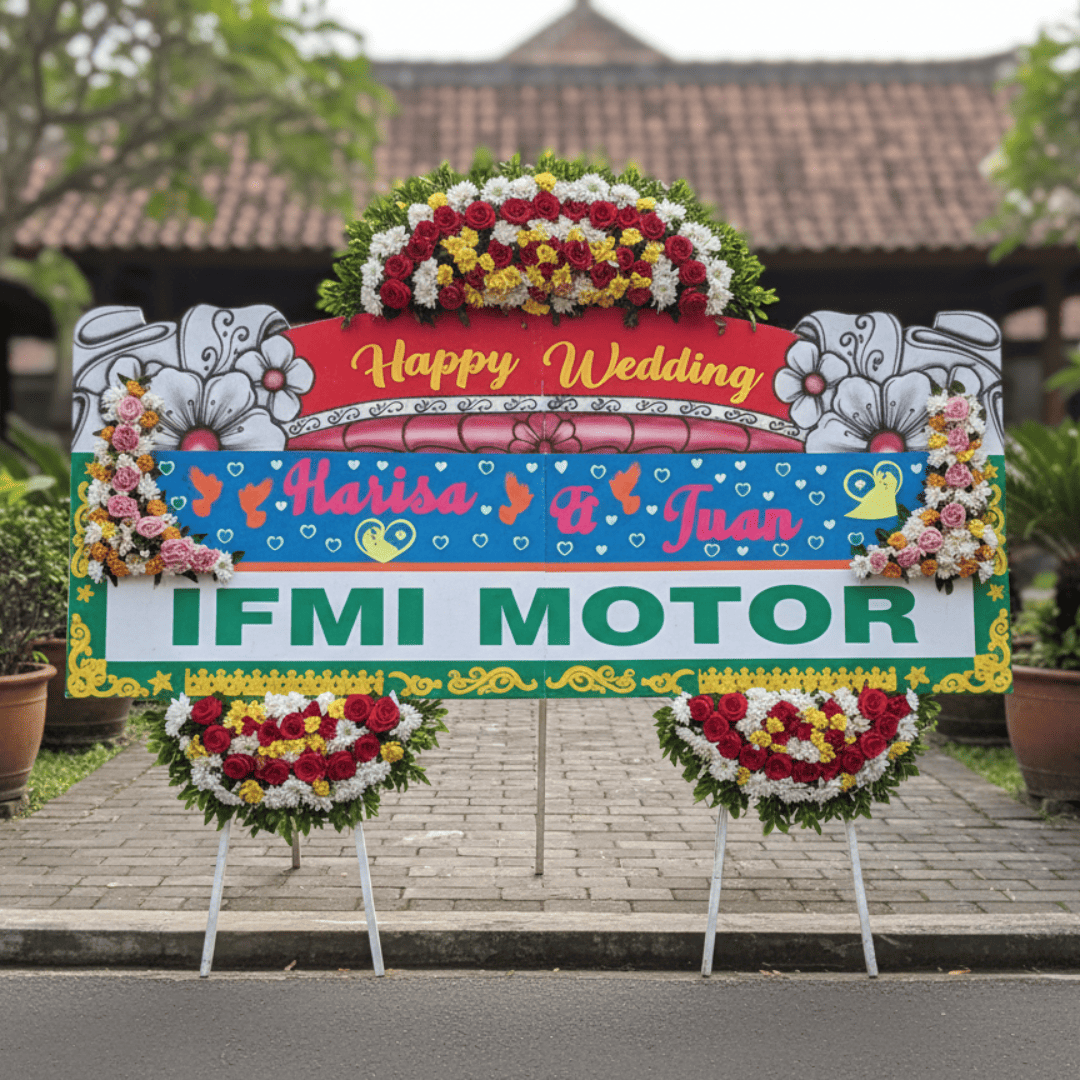 Rangkaian bunga papan khusus untuk acara pernikahan. Dengan rangkaian bunga papan pernikahan ini, Anda dapat ikut menunjukan rasa bahagia dan selamat atas hari bahagia keluarga, sahabat ataupun orang-orang terdekat Anda.
