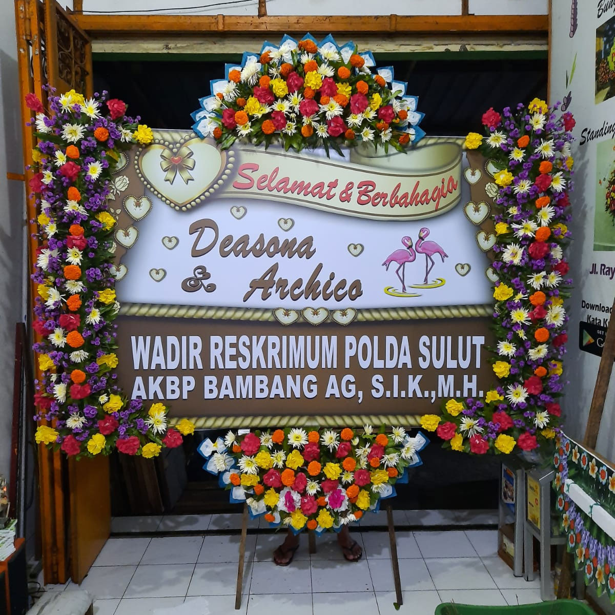 Rangkaian bunga papan khusus untuk acara pernikahan. Dengan rangkaian bunga papan pernikahan ini, Anda dapat ikut menunjukan rasa bahagia dan selamat atas hari bahagia keluarga, sahabat ataupun orang-orang terdekat Anda.